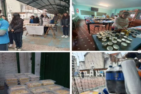 Docentes de todos los niveles y estudiantes del nivel secundario participaron de la jornada de preparación de viandas para familias en situación de calle.
